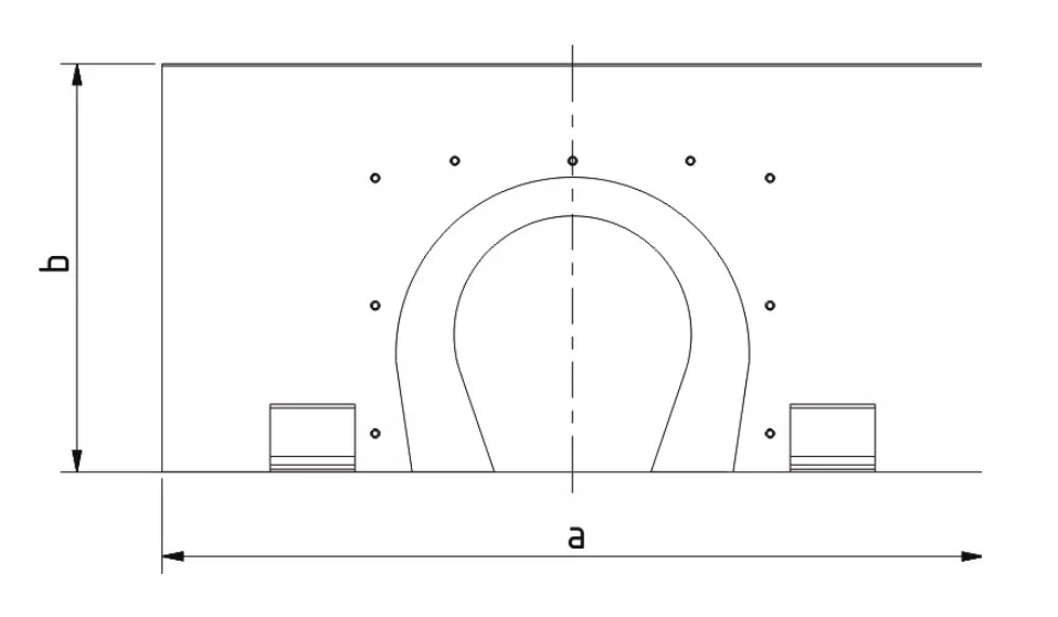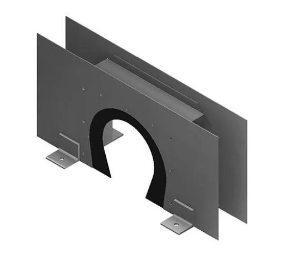 Diese Ausführung ist speziell für Belüftungsrohre mit einer Nennweite von DN 400 konzipiert. Mit ihren Abmessungen von ca. 1070 × 579 mm bietet die Silowanddurchführung eine großflächige Auflage an der Wand und gewährleistet eine hohe mechanische Stabilität. Die massive Stahlkonstruktion ist für den dauerhaften Einsatz in landwirtschaftlichen Betrieben, Flachlagern und Silos ausgelegt.